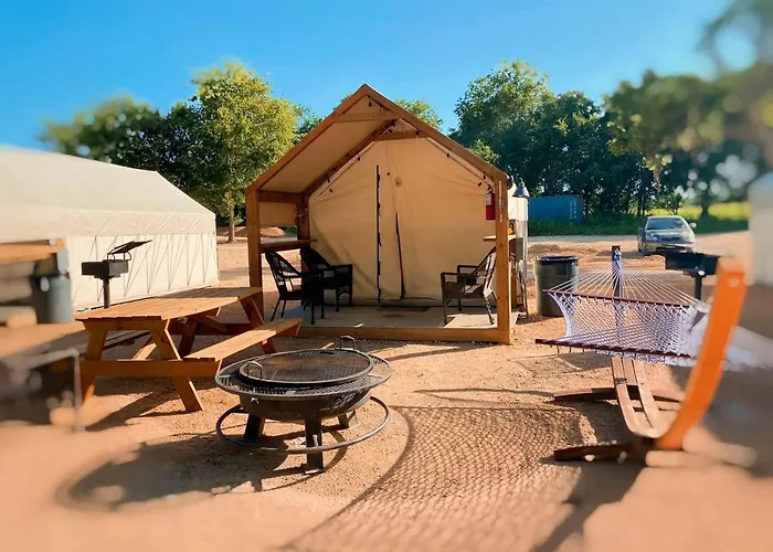Das Hotel Cozy Safari Tent near Kingbury, Texas - Fantastic Glamping Spot on the San Marcos River verfügt über keinen Aufzug. Bitte wenden Sie sich an die Hotelvertreter, um mehr über zusätzliche Einrichtungen vor Ort zu erfahren.